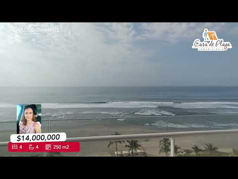 PLAYAMAR DIAMANTE<br><div><br></div><div>Vive en uno de los desarrollos más exclusivos y cotizados de Acapulco Diamante. Este departamento de 250 m², ubicado en el piso 9, ofrece un hogar amplio y elegante con todas las comodidades: 4 recámaras, 4 baños completos, sala-comedor, terraza con vista espectacular al mar, cocina integral, cuarto de servicio con baño, área de lavado, 2 estacionamientos y bodega privada.</div><div><br></div><div>El Condominio Playamar Diamante se distingue por su solidez estructural, diseñada para resistir sismos y huracanes, además de un impecable mantenimiento que garantiza el confort y la seguridad de sus residentes. Entre sus amenidades encontrarás:</div><div><br></div><div>Gimnasio equipado</div><div><br></div><div>Cancha de tenis y canchas de pádel</div><div><br></div><div>Áreas de juegos infantiles y ludoteca</div><div><br></div><div>Albercas para adultos y niños</div><div><br></div><div>Palapa-bar y restaurante</div><div><br></div><div>Espacios de sol y sombra con excelente jardinería</div><div><br></div><div>Servicio de concierge y servicio médico</div><div><br></div><div>Seguridad 24 horas</div><div><br></div><div>Una propiedad ideal para disfrutar en familia, con la tranquilidad de estar en un entorno seguro, exclusivo y con las mejores vistas del océano Pacífico.</div><div><br></div> <br>